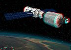 ![]() International Space Station will be completed by the joint efforts of 16 nations; it will then weigh 418 tons, loom seven stories high and spread over almost an acre of space, it will be visible at night with the naked eye. Manned since 2000, Substantial Completion : 2003.